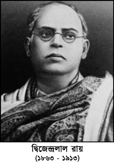 দ্বিজেন্দ্রলাল রায় (১৮৬৩ - ১৯১৩): একাধারে কবি, গীতিকার, সুরকার এবং নাট্যকার। পশ্চিমবঙ্গের নদীয়া জেলার কৃষ্ণনগরে ১৮৬৩ সালে তাঁর জন্ম। পিতার নাম কার্তিকেয় চন্দ্র রায়। তাঁর মাতা প্রসন্নময়ী দেবী ছিলেন শান্তিপুরের অদ্বৈত ঠাকুরের বংশধর। বাল্যকাল থেকেই দ্বিজেন্দ্রলাল সাহিত্যিক ও সাংস্কৃতিক পরিবেশ মানুষ হয়েছেন।।